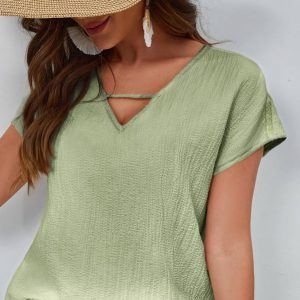 Butterfly Sleeve Keyhole Back Schiffy Blouse