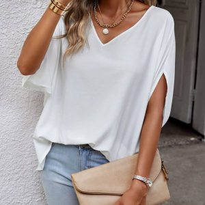 Solid Batwing Sleeve Blouse