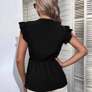 Butterfly Sleeve Knot Front Peplum Blouse