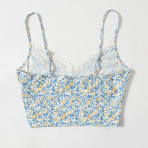 Floral Print Tie Shoulder Frill Trim Peplum Cami Top