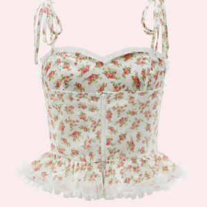 Floral Print Tie Shoulder Frill Trim Peplum Cami Top