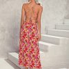 Allover Floral Print Lace Up Backless Draped Front Cami Dress