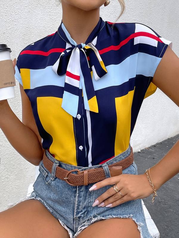 Be the first to review “Color Block Batwing Sleeve Tie Neck Blouse” Cancel reply