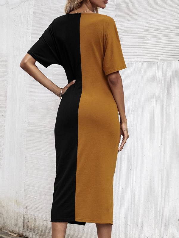 Colorblock Twist Front Split Hem Dress