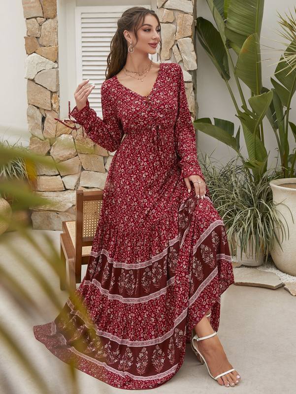 Be the first to review “Floral Print Knot Front Flounce Sleeve Ruffle Hem Maxi Dress” Cancel reply