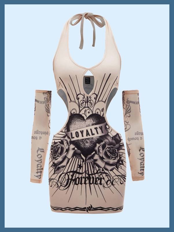 Be the first to review “Letter & Floral Print Cut Out Halter Dress With Arm Sleeve” Cancel reply