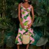 Be the first to review “NEWNESS Tropical Print Tie Front Ruffle Hem Cami Dress” Cancel reply