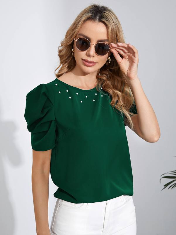 Be the first to review “Pearl Beaded Puff Sleeve Blouse” Cancel reply