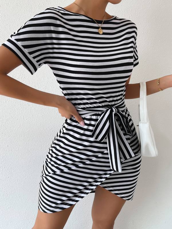 Be the first to review “Striped Print Wrap Belted Dress” Cancel reply