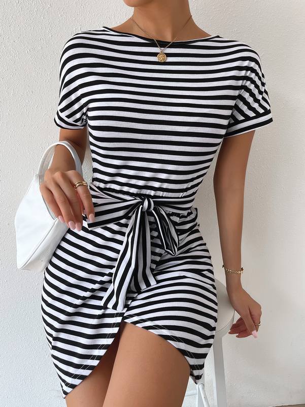 Be the first to review “Striped Print Wrap Belted Dress” Cancel reply