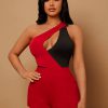 SXY Two Tone One Shoulder Cut Out Bodysuit